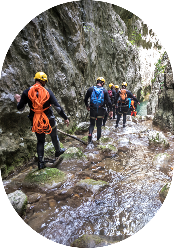 - Team building en los Cañones de Guara: descenso de barranco donde trabajamos en equipo cómo ayudarse , etc.)